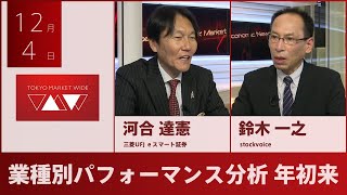 日本株業種別パフォーマンス分析年初来【ゲスト】12月4日三菱UFJeスマート証券河合達憲さん