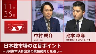 日本株市場の注目ポイントー3月期本決算企業の業績動向と見通しー【ゲスト】11月26日東海東京インテリジェンス・ラボ池本卓麻さん