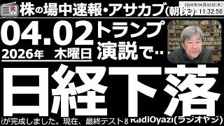 【朝株!(投資情報)】4/7深夜2時にトランプが演説。中東情勢激化につながる内容で、原油が上昇。日本株も売りが優勢になっている。このあと下洛の「第2章」が始まり、日経が再度、5万円に接近する可能性も。【朝株!(投資情報)】4/7深夜2時にトランプが演説。中東情勢激化につながる内容で、原油が上昇。日本株も売りが優勢になっている。このあと下洛の「第2章」が始まり、日経が再度、5万円に接近する可能性も。