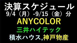 あす上がる株 決算銘柄とスケジュール2週間分 ~最新の日本株での株式投資のお話です。初心者でも! ANYCOLOR、三井ハイテック、積水ハウス、神戸物産~