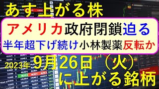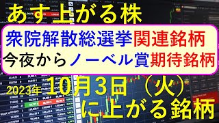 あす上がる株 2023年10月10日(火)に上がる銘柄 ~最新の日本株での株式投資のお話です。FOMCと日銀の利上げ~