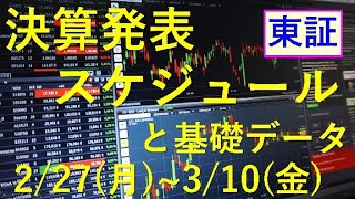 決算発表スケジュール2週間分(2/27-3/10)全88社カレンダー。 ~あす上がる株~