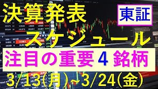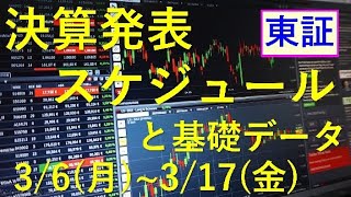 決算発表スケジュール2週間分(3/6-3/17)全195社カレンダー。 ~あす上がる株~