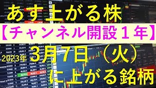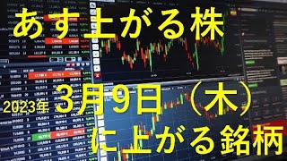 あす上がる株 2023年3月7日(火)に上がる銘柄