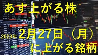 あす上がる株 2023年2月27日(月)に上がる銘柄