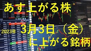 あす上がる株 2023年3月3日(金)に上がる銘柄