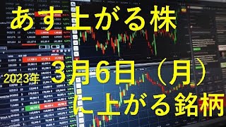 あす上がる株 2023年3月6日(月)に上がる銘柄