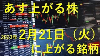 あす上がる株 2023年2月21日(火)に上がる銘柄