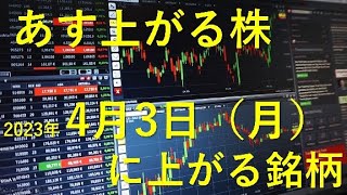 あす上がる株 2023年4月3日(月)に上がる銘柄