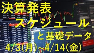 決算発表スケジュール2週間分(4/3-4/14)全410社カレンダー。 ~あす上がる株~