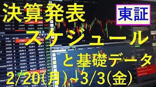 決算発表スケジュール2週間分(2/20ー3/3)27社カレンダー。