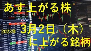 あす上がる株 2023年3月2日(木)に上がる銘柄