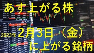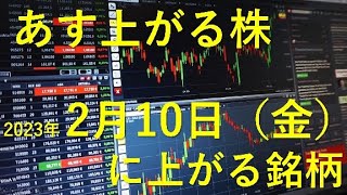 あす上がる株 2023年2月10日(金)に上がる銘柄