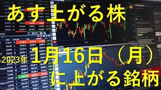 あす上がる株 2023年1月16日(月)に上がる銘柄 株式投資