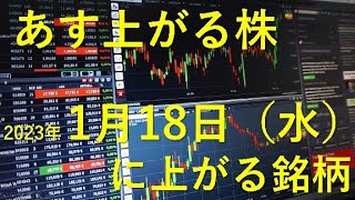 あす上がる株 2023年1月18日(水)に上がる銘柄
