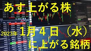 あす上がる株 2023年1月4日(水)に上がる銘柄