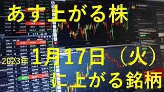 あす上がる株 2023年1月17日(火)に上がる銘柄 株式投資