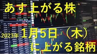 あす上がる株 2023年1月5日(木)に上がる銘柄