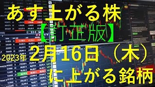 あす上がる株 2023年2月16日(木)に上がる銘柄 【訂正版】