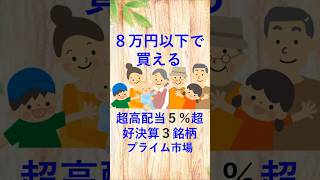8万円以下で買える5%超の高配当で、好決算のプライム市場3銘柄。 #shorts