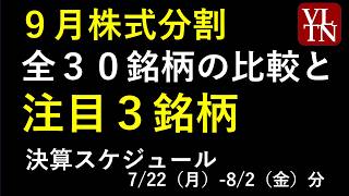 9月の株式分割と決算スケジュール。ソニー、三井住友、ソフトバンク、アイシン、日東電工、浜松ホトニクス、日本取引所、石油資源開発~あす上がる株。最新の日本株情報。高配当株の株価やデイトレ情報も~