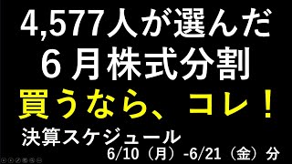 6月の株式分割と決算スケジュール。荏原製作所、日立製作所、アシックス、豊田通商、三井物産の決算と株価。~あす上がる株。最新の日本株での株式投資。高配当株やデイトレ情報も ~