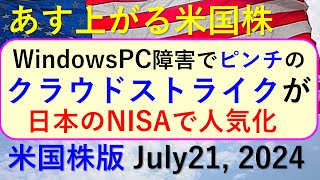 米国株の株式投資。クラウドストライク損害賠償。マイクロソフト決算。日銀金融政策決定会合。メタ決算~あす上がる株米国版July 31, 2024。最新のアメリカ株価と株式投資。高配当株やデイトレ情報も