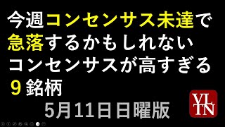 今週コンセンサス未達で急落するかもしれないコンセンサスが高すぎる9銘柄。5月11日日曜版~あす上がる株。最新の日本株情報。高配当株の株価やデイトレ情報も~
