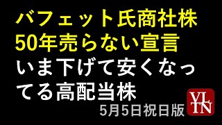 いま下げて安くなってる高配当株。バフェット氏が商社株50年売らない宣言。トランプ大統領が映画に100%の関税。(5/5祝日版)~あす上がる株。最新の日本株情報。高配当株の株価やデイトレ情報も~