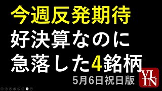 今週反発期待、好決算なのに急落した4銘柄。5月6日祝日版~あす上がる株。最新の日本株情報。高配当株の株価やデイトレ情報も~