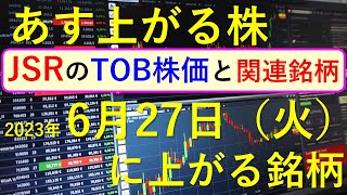 あす上がる株 2023年6月27日(火)に上がる銘柄 ~日本株での株式投資のお話です。JSRのTOB株価と関連銘柄。最新の