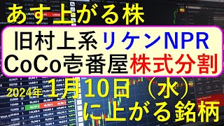 あす上がる株 2024年1月10日(水)に上がる銘柄 ~最新の日本株での株式投資のお話です。