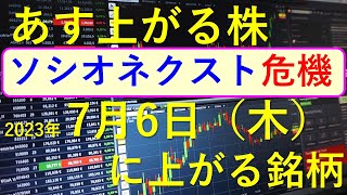 あす上がる株 2023年7月6日(木)に上がる銘柄 ~日本株での株式投資と最新の株式情報のお話です。ソシオネクストが海外で約1262万株の売り出し。最新の