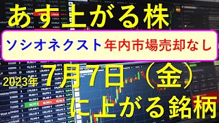 あす上がる株 2023年7月7日(金)に上がる銘柄 ~日本株での最新の株式投資のお話です。ソシオネクストの海外売り出しでのロックアップ。最新の