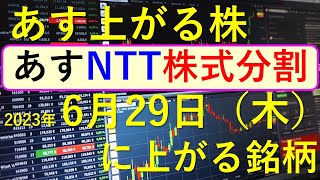 あす上がる株 2023年6月29日(木)に上がる銘柄 ~日本株での株式投資のお話です。NTTの株式分割。25分割。最新の