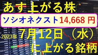 あす上がる株 2023年7月12日(水)に上がる銘柄 ~日本株での最新の株式投資のお話です。ソシオネクストの売出価格が決定。最新の