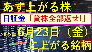あす上がる株 2023年6月23日(金)に上がる銘柄 ~日本株での株式投資のお話です。最新の