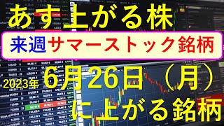 あす上がる株 2023年6月26日(月)に上がる銘柄 ~日本株での株式投資のお話です。最新の