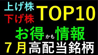 あす上がる株 高配当株の7月銘柄ランキング ~日本株での株式投資のお話です。最新の