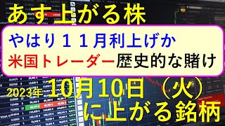 あす上がる株 2023年10月10日(火)に上がる銘柄 ~最新の日本株での株式投資のお話です。FOMCと