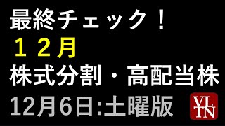 12月の株式分割と高配当株。 ソフトバンクグループ、伊藤忠、ブリヂストン、住友不動産、イビデン、三井化学、サッポロ、マブチモーター、マルハニチロ。12月6日(土)~あす上がる株。最新の日本株情報~