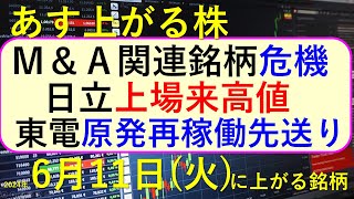 あす上がる株 2024年6月11日(火)に上がる銘柄。M&A