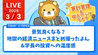 【家計改善/収入アップライブ】景気良くなる?地獄の経済ニュースまとめ撮ったよん&学長の投資への温度感【3月3日8時30分まで】【家計改善/収入アップライブ】景気良くなる?地獄の経済ニュースまとめ撮ったよん&学長の投資への温度感【3月3日8時30分まで】