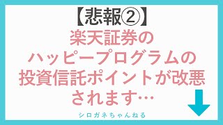【悲報②】楽天証券のハッピープログラムの投資信託ポイントが改悪されます…