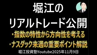 堀江のリアルトレード公開(11月7日)|指数の特性から方向性を考える