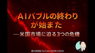 【悲報】AIバブルの終わりが始まったー米国市場に迫る3つの危機