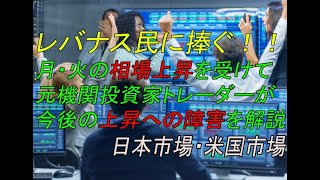 レバナス民に捧ぐ 月・火の相場上昇を受けて元機関投資家トレーダーが今後の上昇への障害を解説!日本市場・米国市場