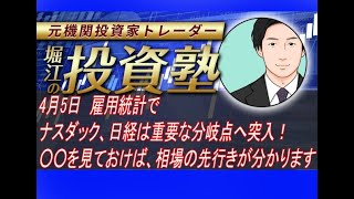 4月5日雇用統計でナスダック、日経は重要な分岐点へ突入!○○を見ておけば相場の先行きが分かります!