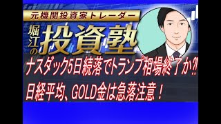 ナスダック5日続落でトランプ相場終了か⁈日経平均、GOLD金は急落注意!