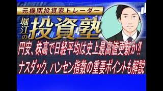 円安、株高で日経平均は史上最高値更新か?ナスダック、ハンセン指数の重要ポイントも解説